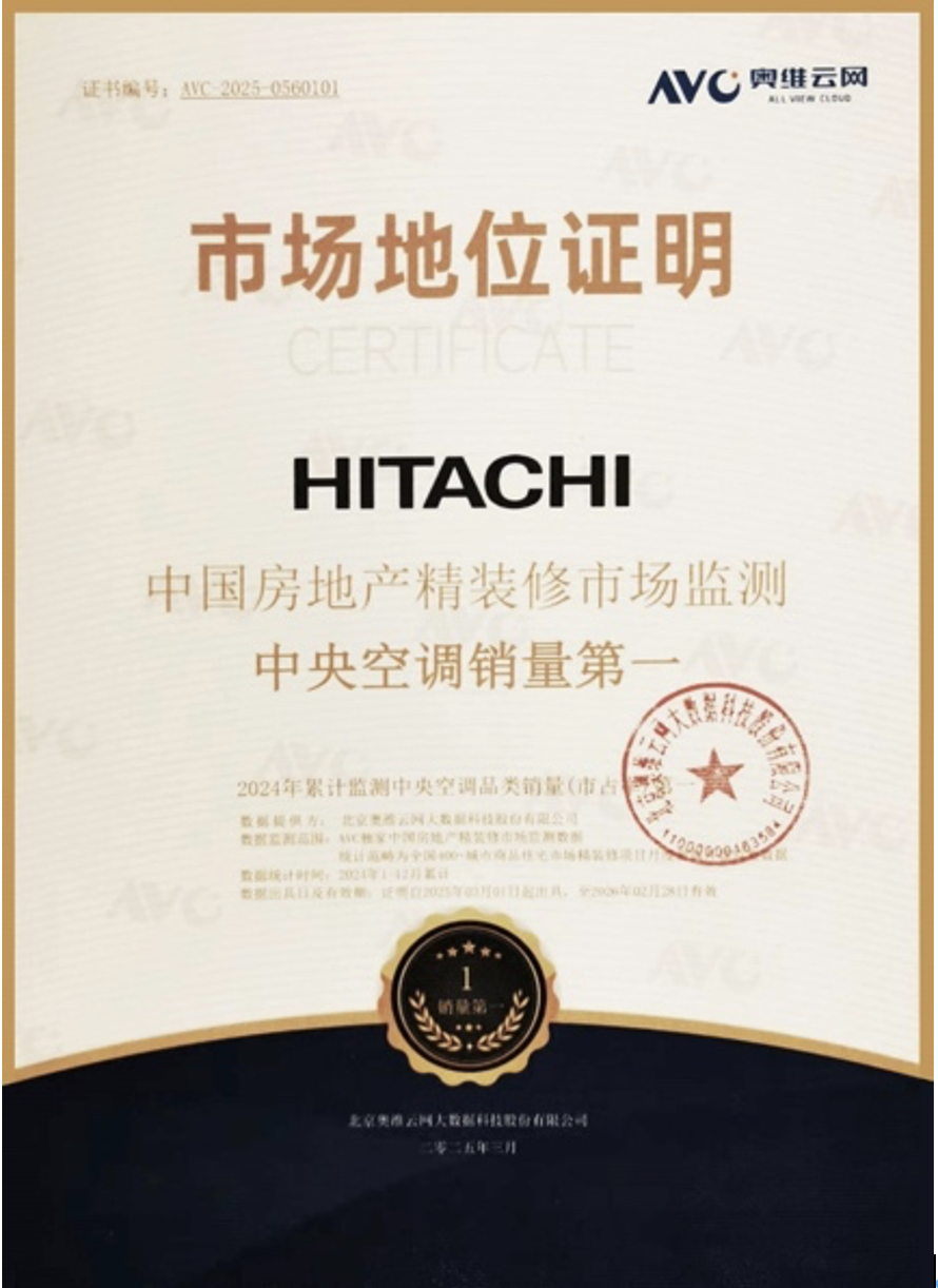 2019年3月,海信日立再度荣获了万科集团材料设备类A级供应商称号。这也标志着日立中央空调成为空调类唯一连续五届蝉联该荣誉的中央空调品牌。